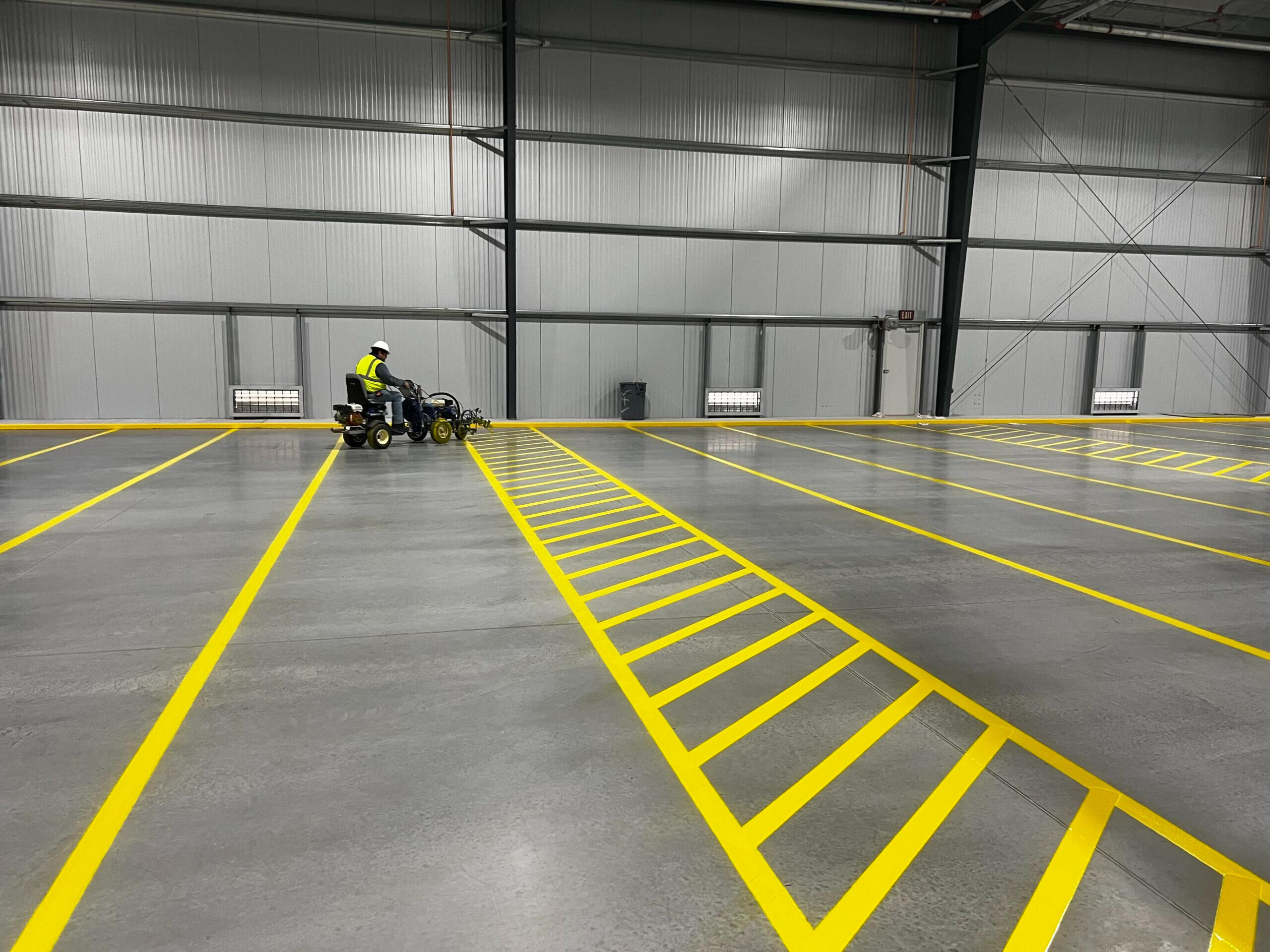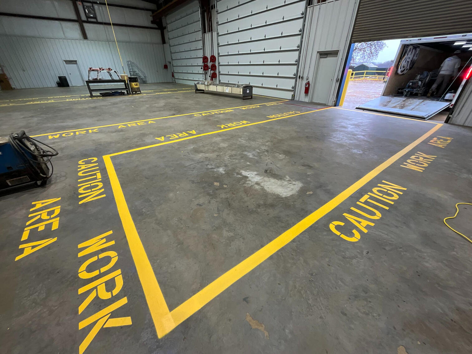 Indoor line striping, blackouts, and traffic flow correctionsForklift and pedestrian separation correctionsSafety zone and hazard marking updatesInstallation of safety hardware and protection systemsFixture removal, relocation, and reinstallation related to traffic flow and safety correctionsTargeted interior surface repair in high-impact areas