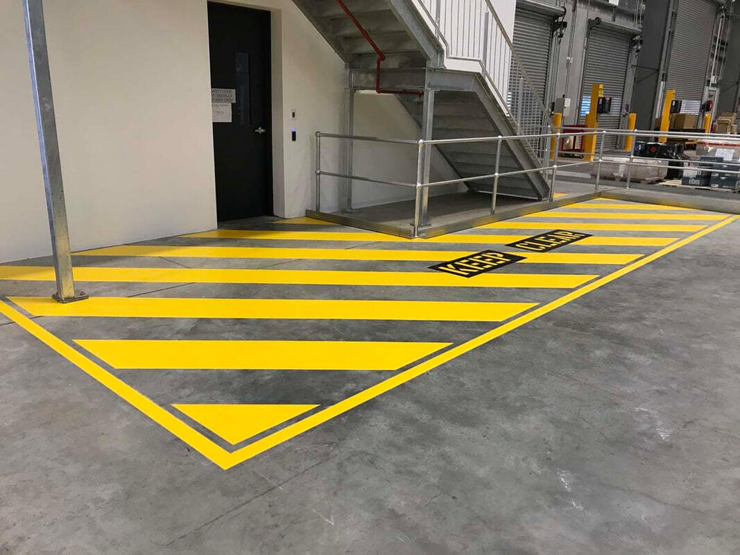 Indoor line striping, blackouts, and traffic flow correctionsForklift and pedestrian separation correctionsSafety zone and hazard marking updatesInstallation of safety hardware and protection systemsFixture removal, relocation, and reinstallation related to traffic flow and safety correctionsTargeted interior surface repair in high-impact areas